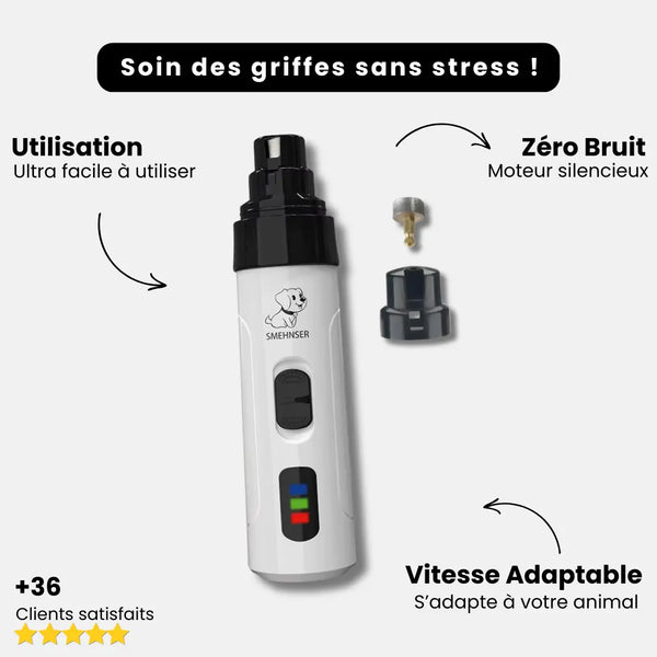 Le coupe-griffes électrique ultra-doux qui transforme la corvée en moment de plaisir. Offrez à votre compagnon une coupe parfaite… sans panique, ni blessure !
