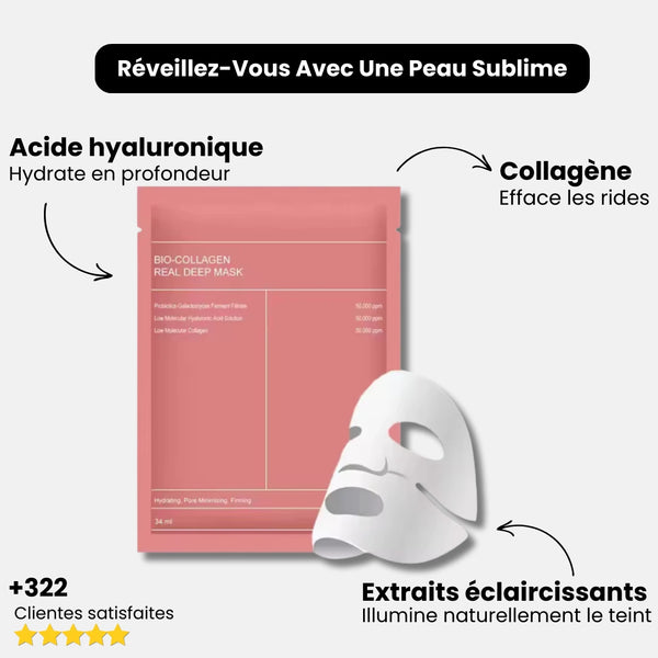 Le bio-collagène stimule l’élasticité et la fermeté, tandis que l’action occlusive du masque maximise la pénétration des nutriments.